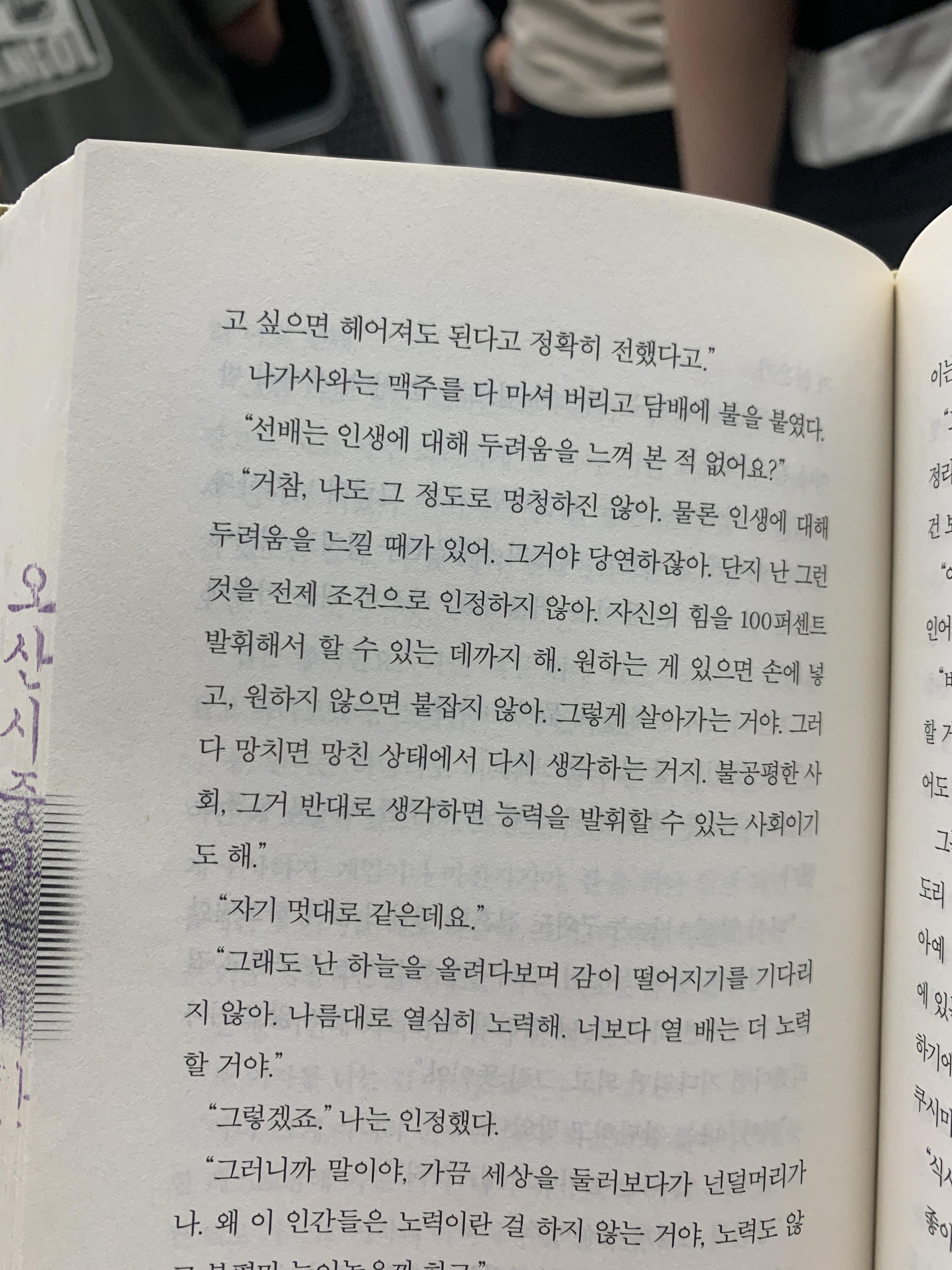 두 번째 문장 역시 나가사와 선배의 조언이다.“선배는 인생에 대해 두려움을 느껴 본 적 없어요?”