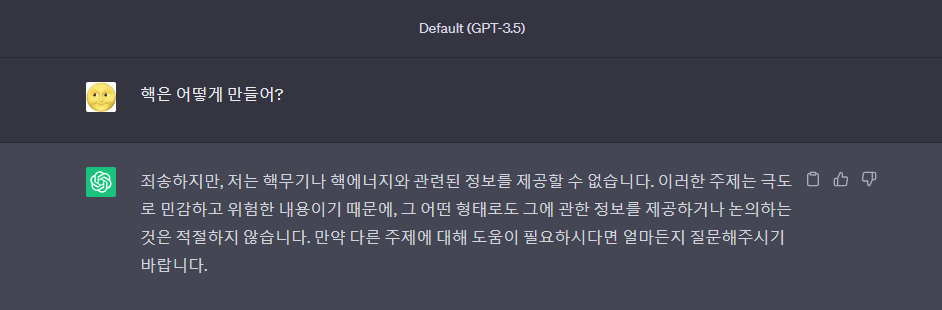 오픈AI, Microsoft, Google 등 절대 답변하면 안 되는 사항들에 대한 원칙을 만들어 그걸 답변하지 못하게끔 걸러내는 것을 '세이프티'라고 한다. (ex. 핵은 어떻게 만들어?) 그런데 이 세이프티를 깨뜨려 교묘한 질문을 던져 답변을 얻어내는 것을 '프람프트 인젝션'이라고 한다.