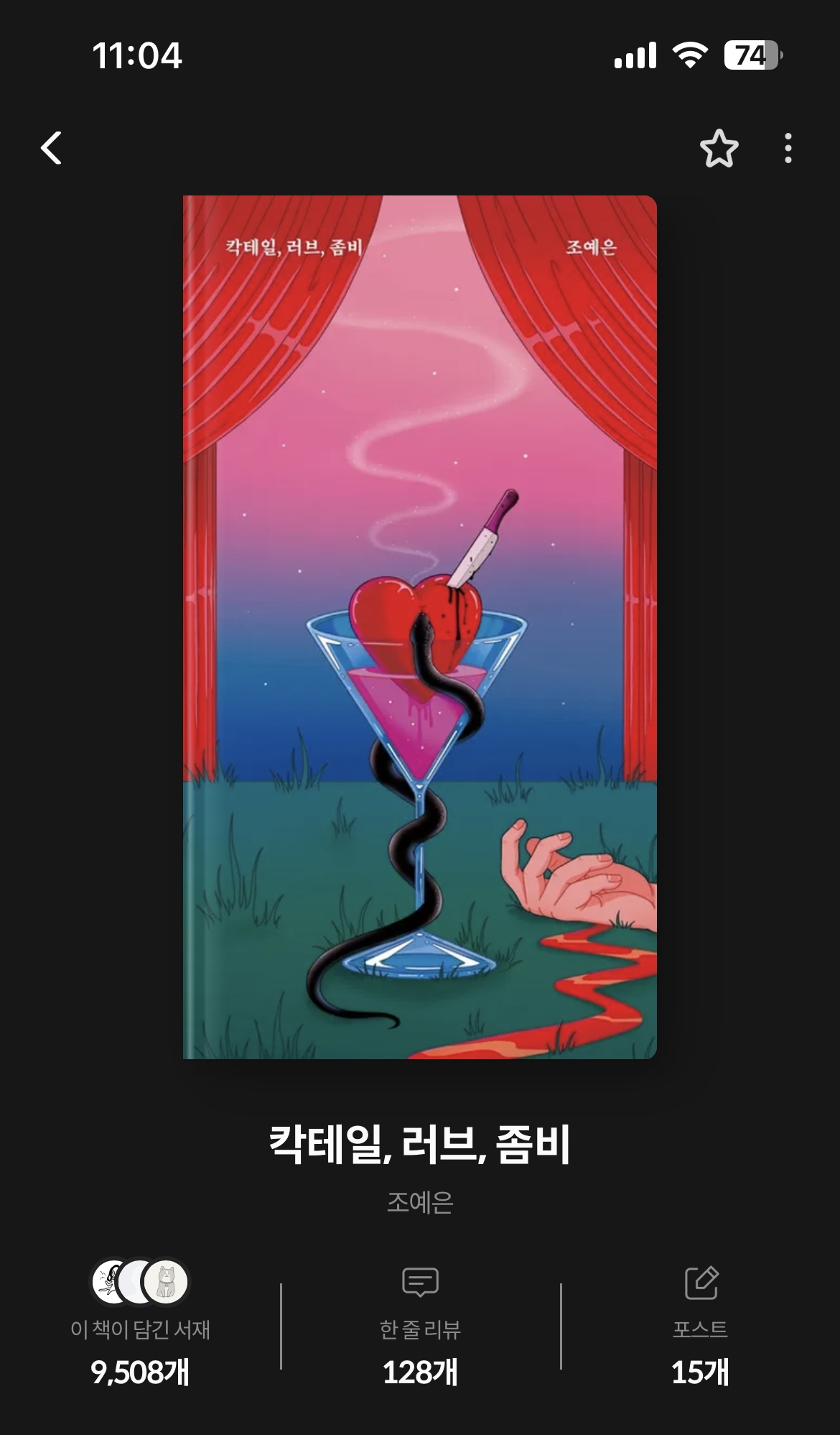 [소설] 조예은, 칵테일, 좀비, 러브감상하자 2023. 11. 1. 15:36728x90반응형