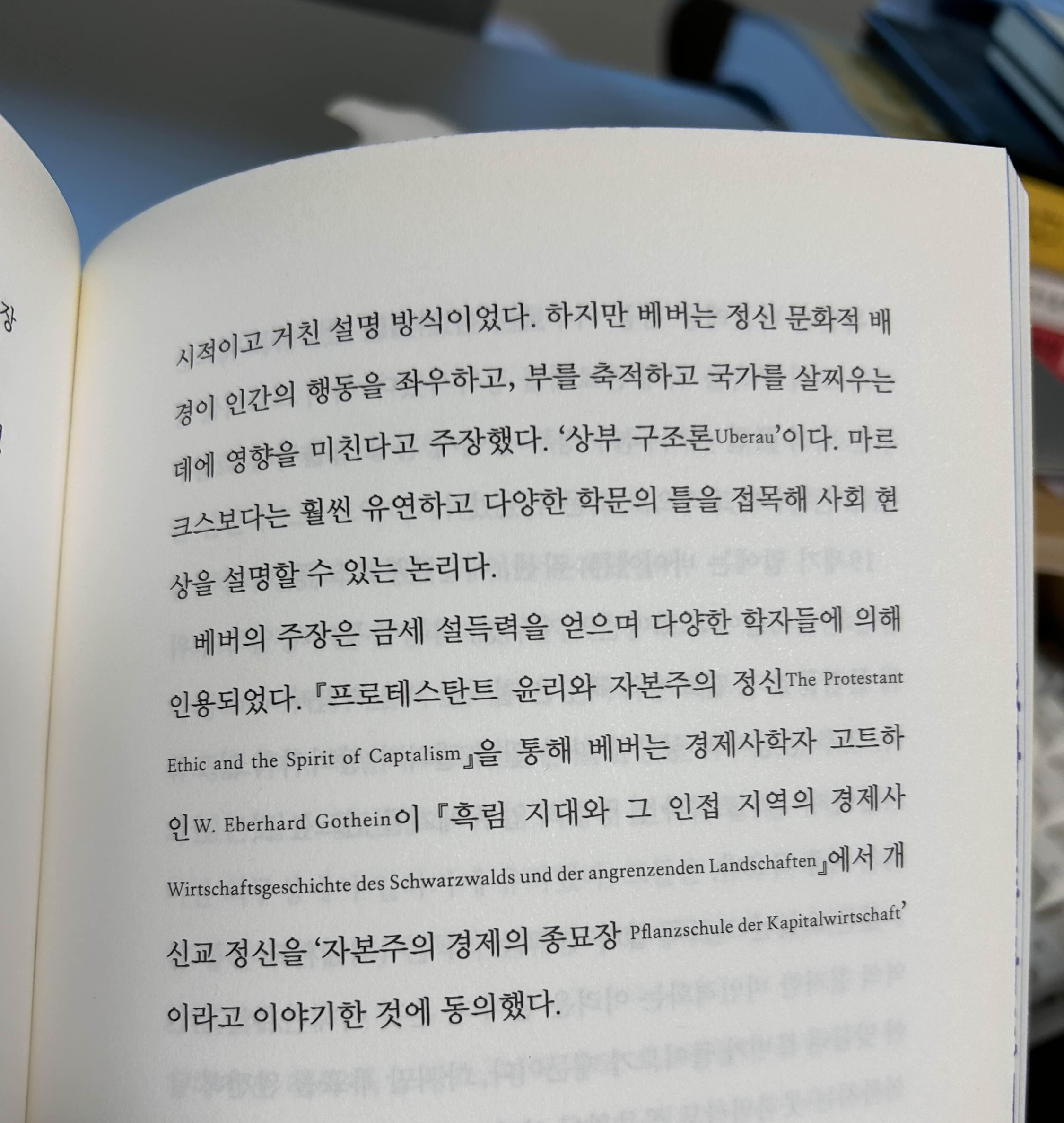베버가 주장하는 상부 구조론(Uberau), 정신 문화적 배경이 인간의 행동을 좌우하고, 부를 축적하고 국가를 살찌우는데에 영향을 미친다. 마르크스보다는 훨씬 유연하고 다양한 학문의 틀을 접목해 사회 현상을 설명할 수 있는 논리다.728x90반응형'감상하자' 카테고리의 다른 글