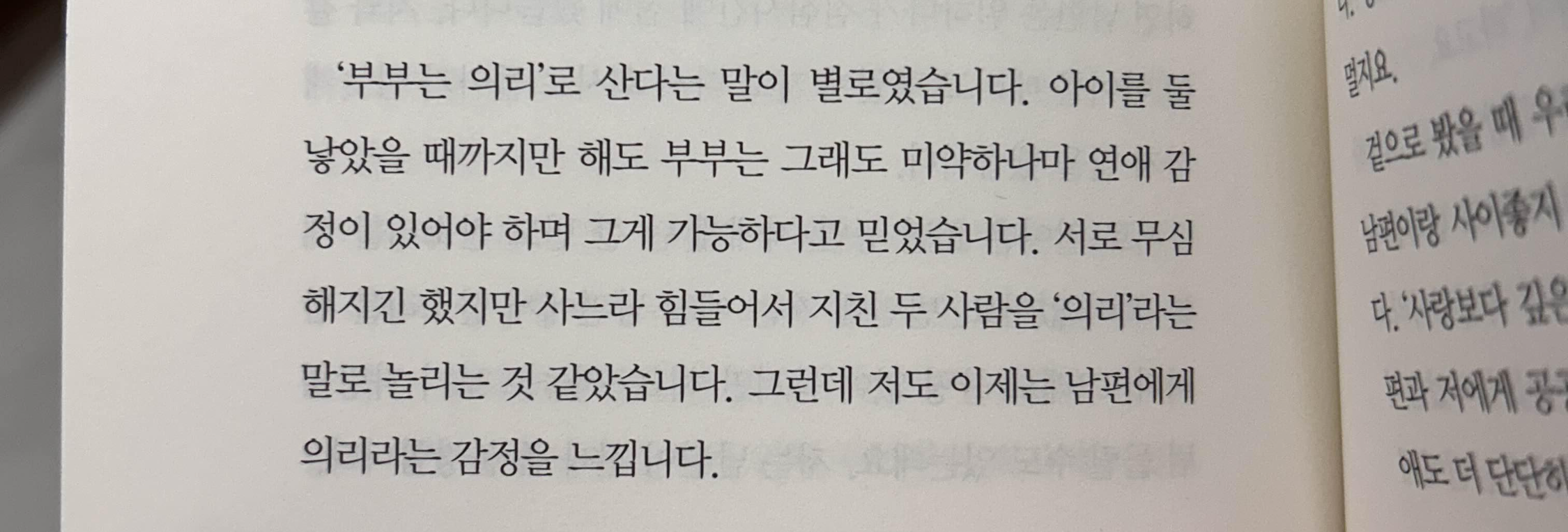 가끔 40-50대 중년 부부들이 부부 토크쇼에 나와 '의리'로 산다는 말을 자주한다. 시간이 흐르면 상현이와 나도 서로 애정이 없어지고 저렇게 표현할까? 라는 생각을 한 적 있었는데, 그 나이대가 되면 정말 사느라 바빠서 지쳐 '의리'라고 놀릴 수 있을것도 같다.