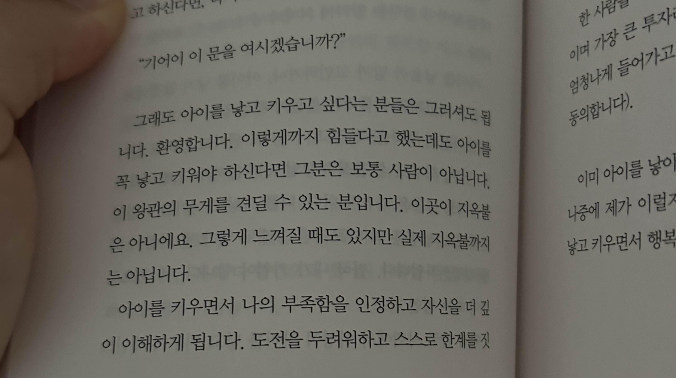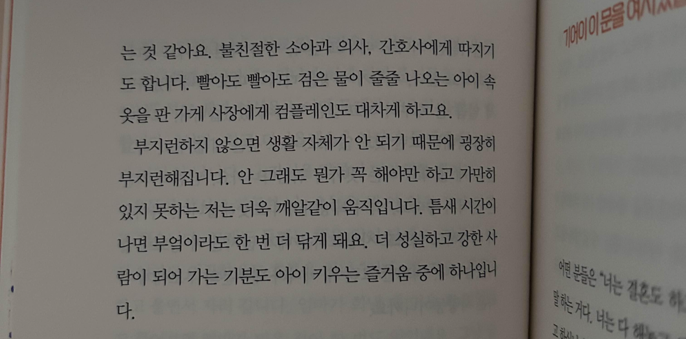 아이를 키우면서 얻는 것이 있지요. 아이가 자라고, 배우고, 나에게 더 넓은 세계를 보여줍니다. 아이는 부모를 조건 없이 좋아합니다. 아이가 어렸을 때는 부모가 아이를 사랑하는 것보다 아이가 부모를 사랑하는 마음이 더 크고 순수하다고 생각합니다.