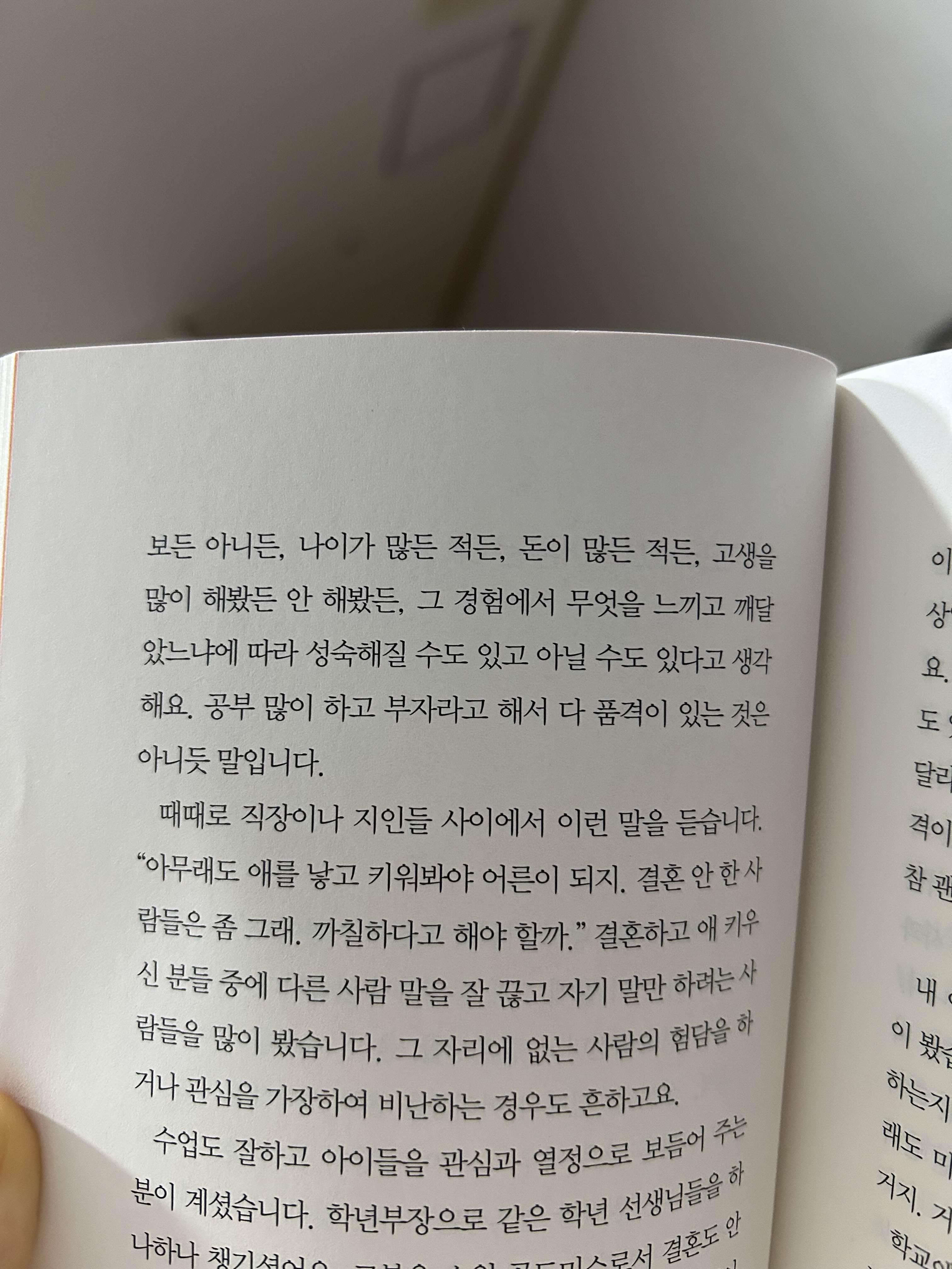 나이가 많든 적든, 돈이 많든 적든, 고생을 많이 해봤든 안 해봤든, 그 경험에서 무엇을 느끼고 깨달았느냐에 따라 성숙해질 수도 있고 아닐 수도 있다고 생각해요. 공부 많이 하고 부자라고 해서 다 품격이 있는 것은 아니듯 말입니다.