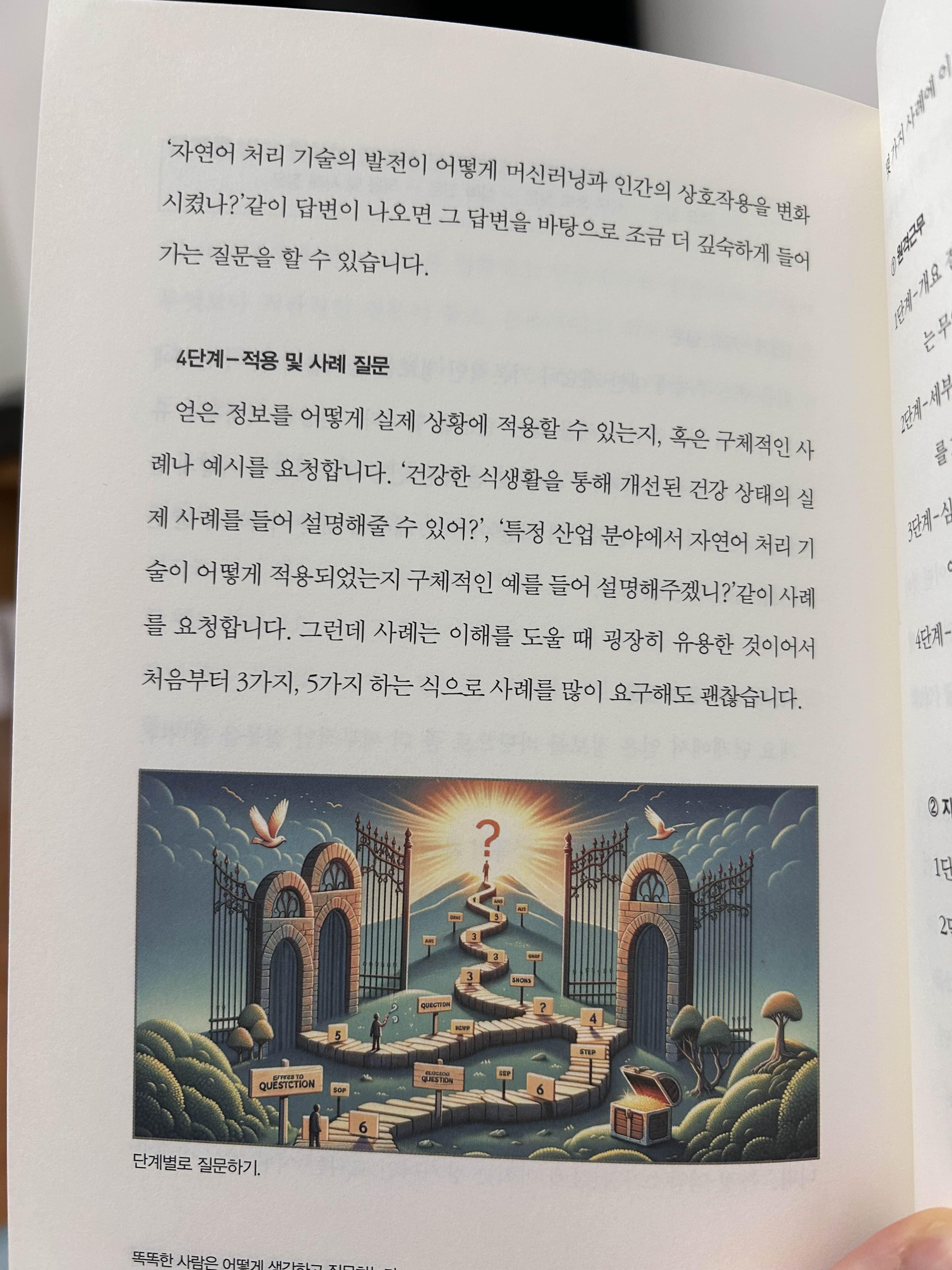 책을 읽어야 하는 또 하나의 이유는 포인트와 포인트를 연결해주면 결과가 구체적이 되기 때문에, 유용한 방법이라는 것이죠. 여기서 포인트는 지식입니다. 그냥 물어보는 것이 아니라, 자신의 지식을 활용해서 포인트를 세우고, 그 포인트들을 이어서 맥락을 만들어 물어보는 겁니다. 그러면 답변의 방향이 뾰족해지면서 자신이 원하는 결과에 가깝게 나올 확률이 높아지는 거죠.