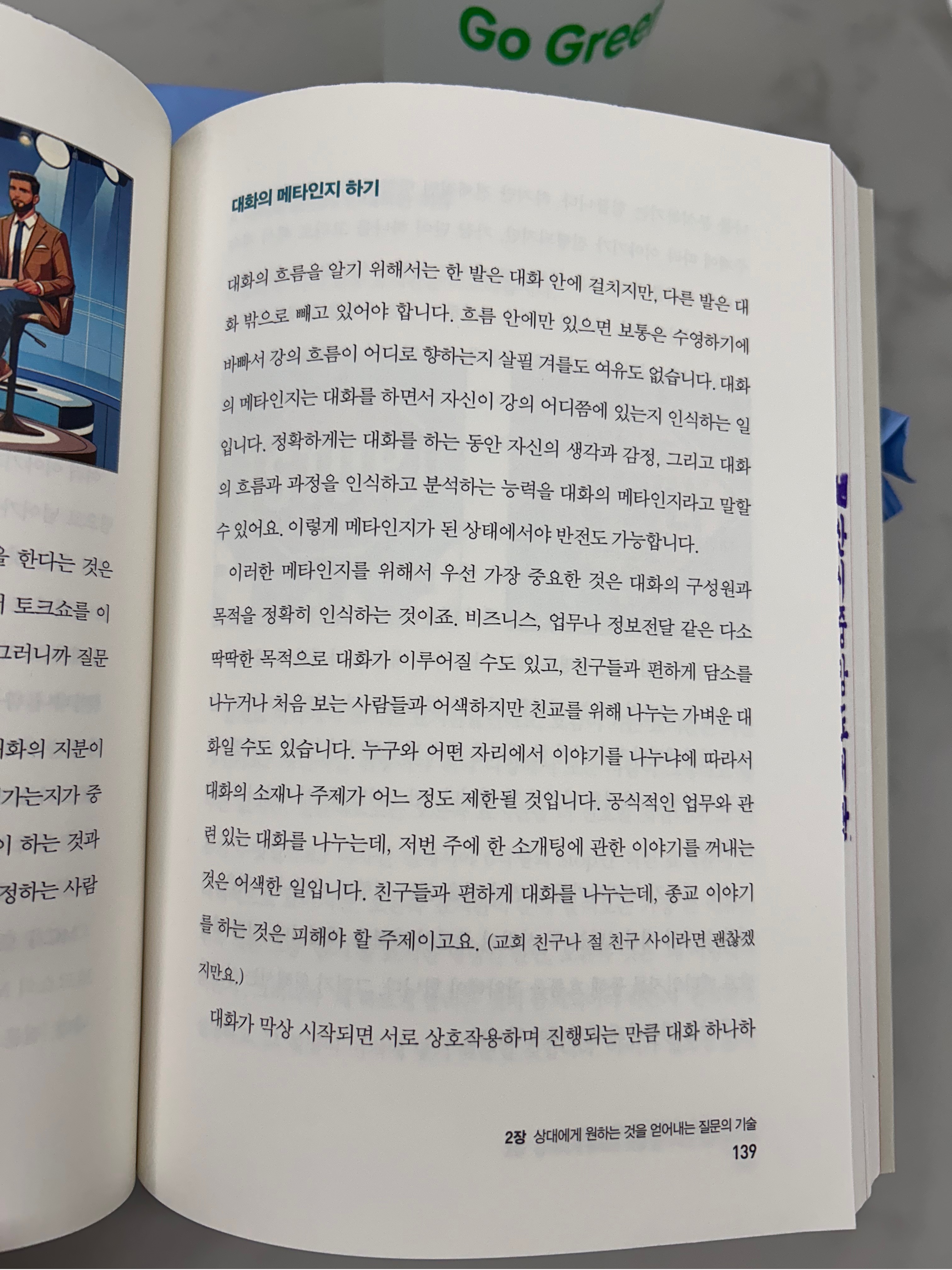대화를 하는 동안 자신의 생각과 감정, 그리고 대화의 흐름과 과정을 인식하고 분석하는 능력을 대화의 메타인지라고 말할 수 있어요.