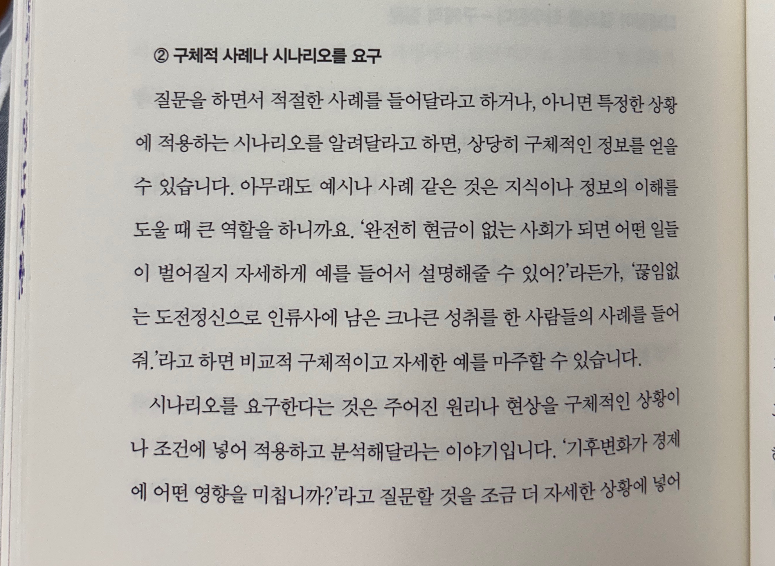 ② 구체적 사례나 시나리오를 요구