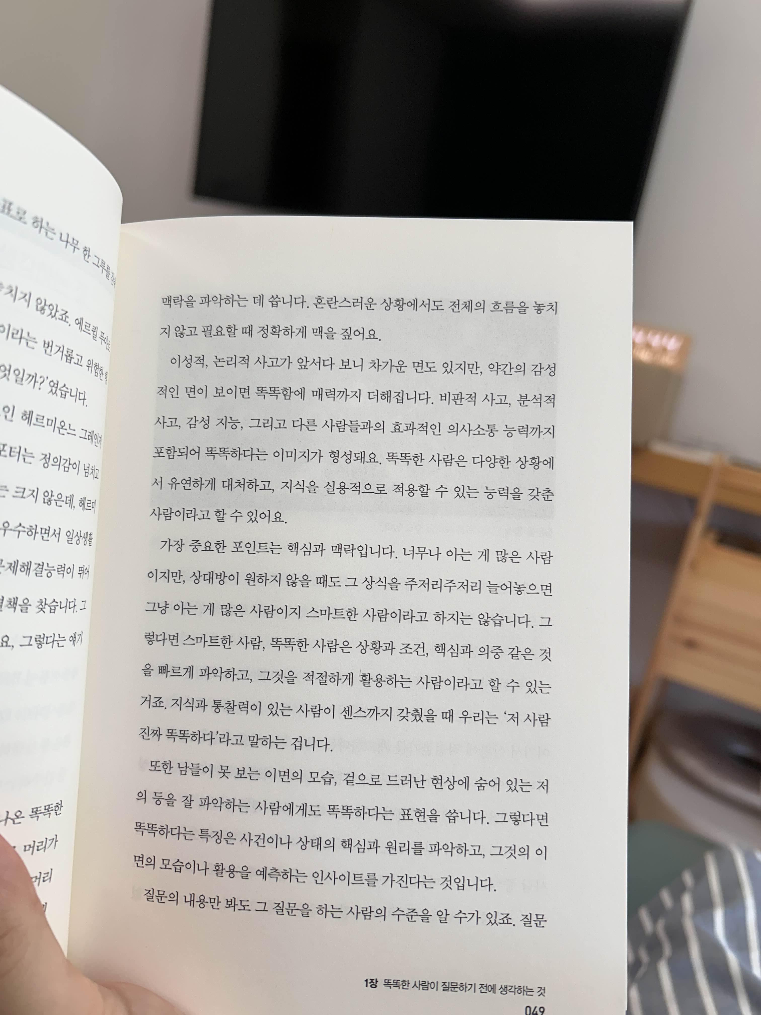 똑똑한 사람은 상황과 조건, 핵심과 의중 같은 것을 빠르게 파악하고, 그것을 적절하게 활용하는 사람이라고 할 수 있는 거죠. 지식과 통찰력이 있는 사람이 센스까지 갖췄을 때 우리는 '저 사람 진짜 똑똑하다'라고 말하는 겁니다.