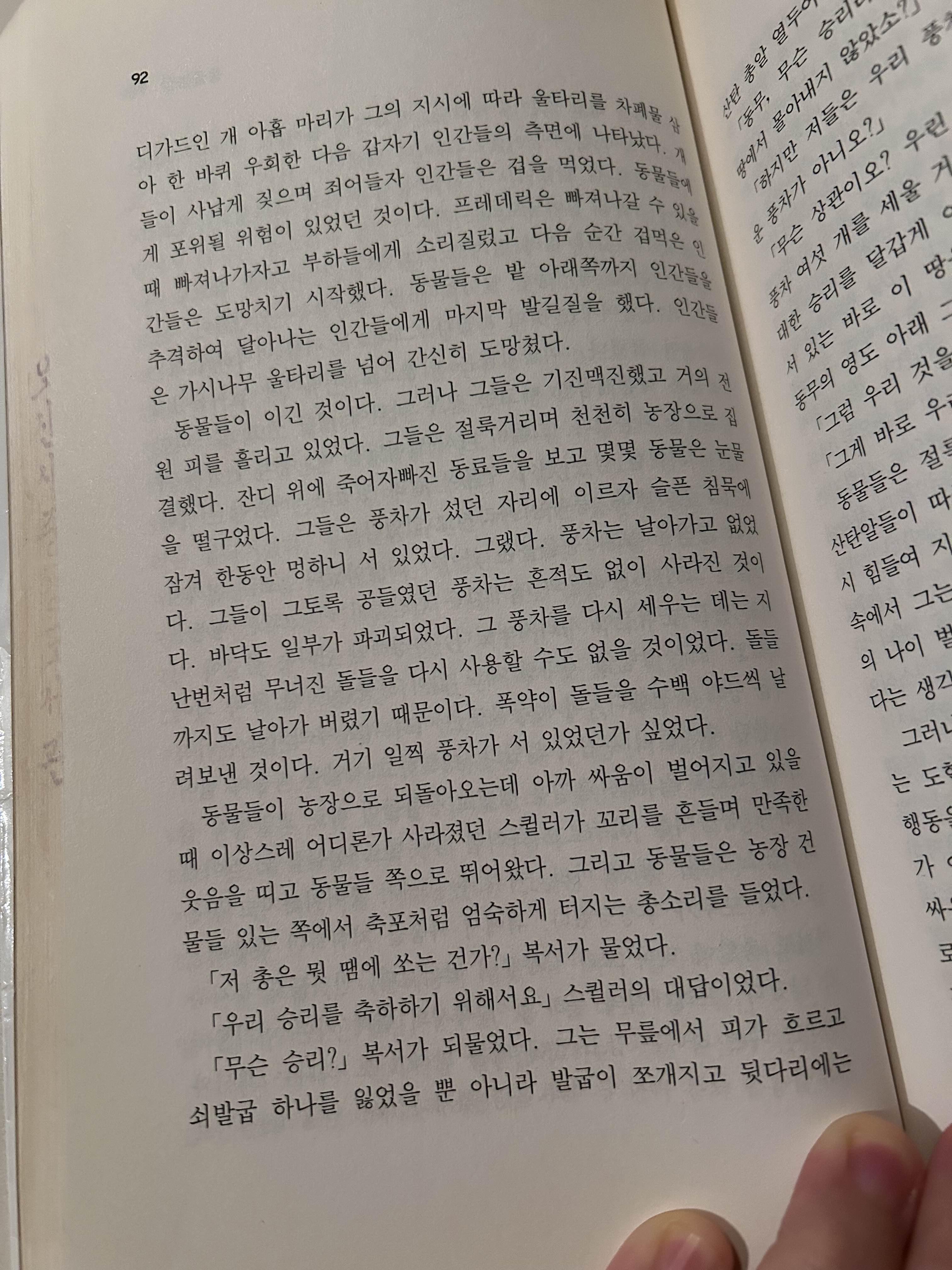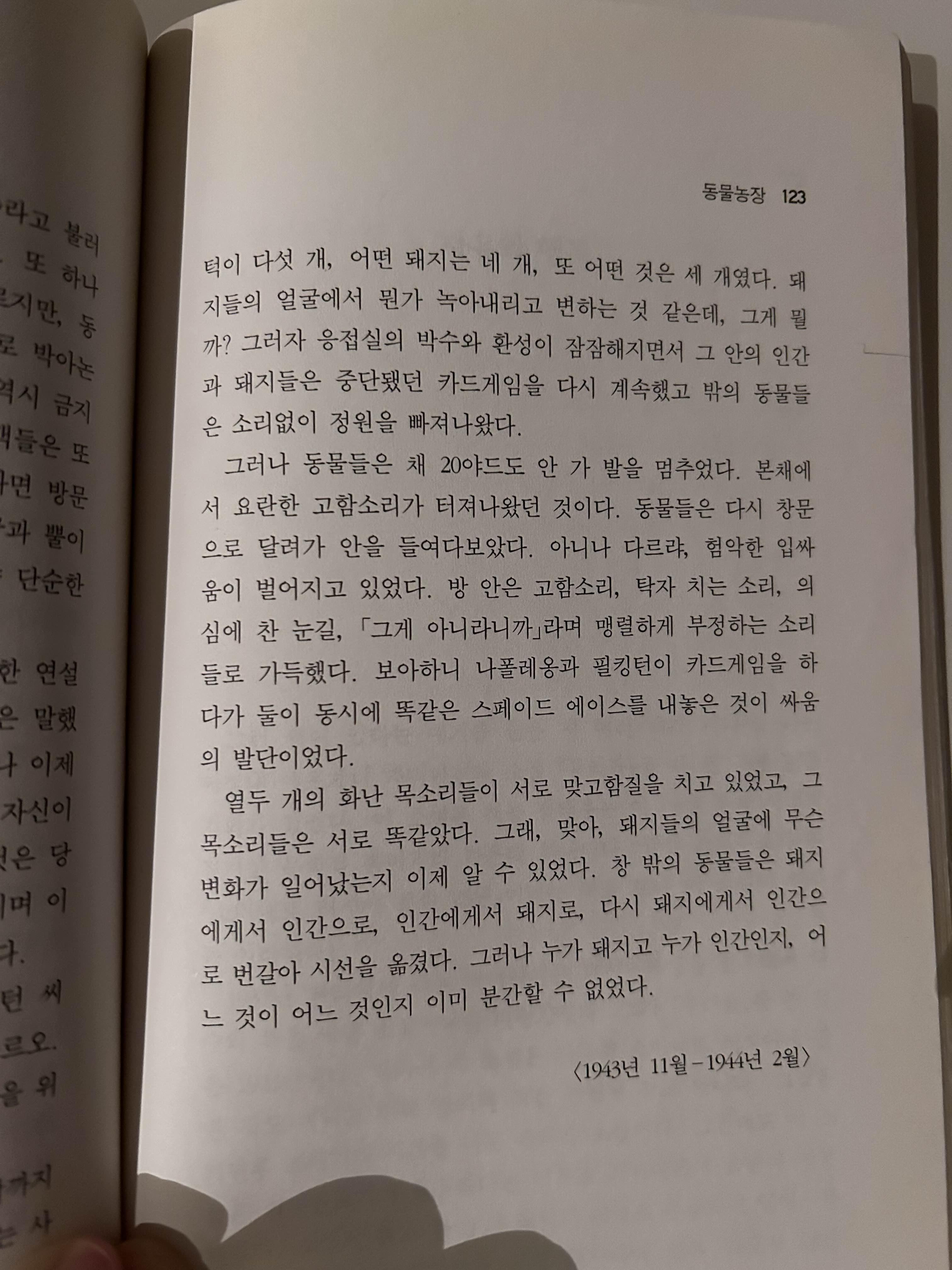 역사적 사건(스탈린 독재 체제)을 알고 읽었다면 더 재밌게 읽었을 풍자우화소설.