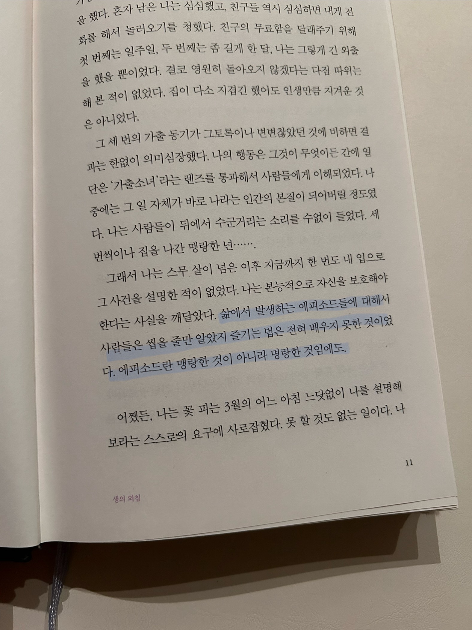 삶에서 발생하는 에피소드들에 대해서 사람들은 씹을 줄만 알았지 즐기는 법을 전혀 배우지 못한 것이었다. 에피소드란 맹랑한 것이 아니라 명량한 것임에도.