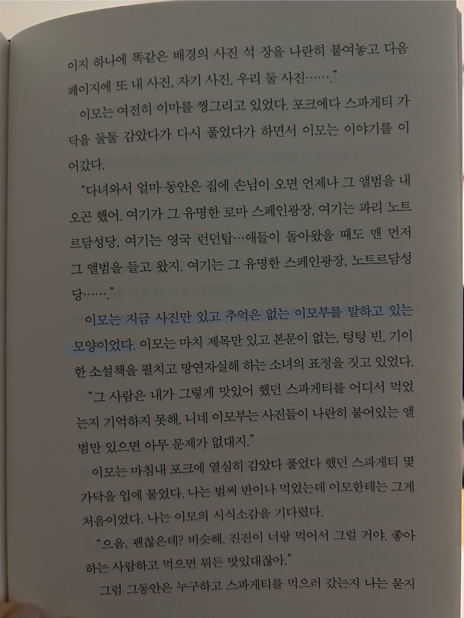 이모는 지금 사진만 있고 추억은 없는 이모부를 말하고 있는 모양이었다.