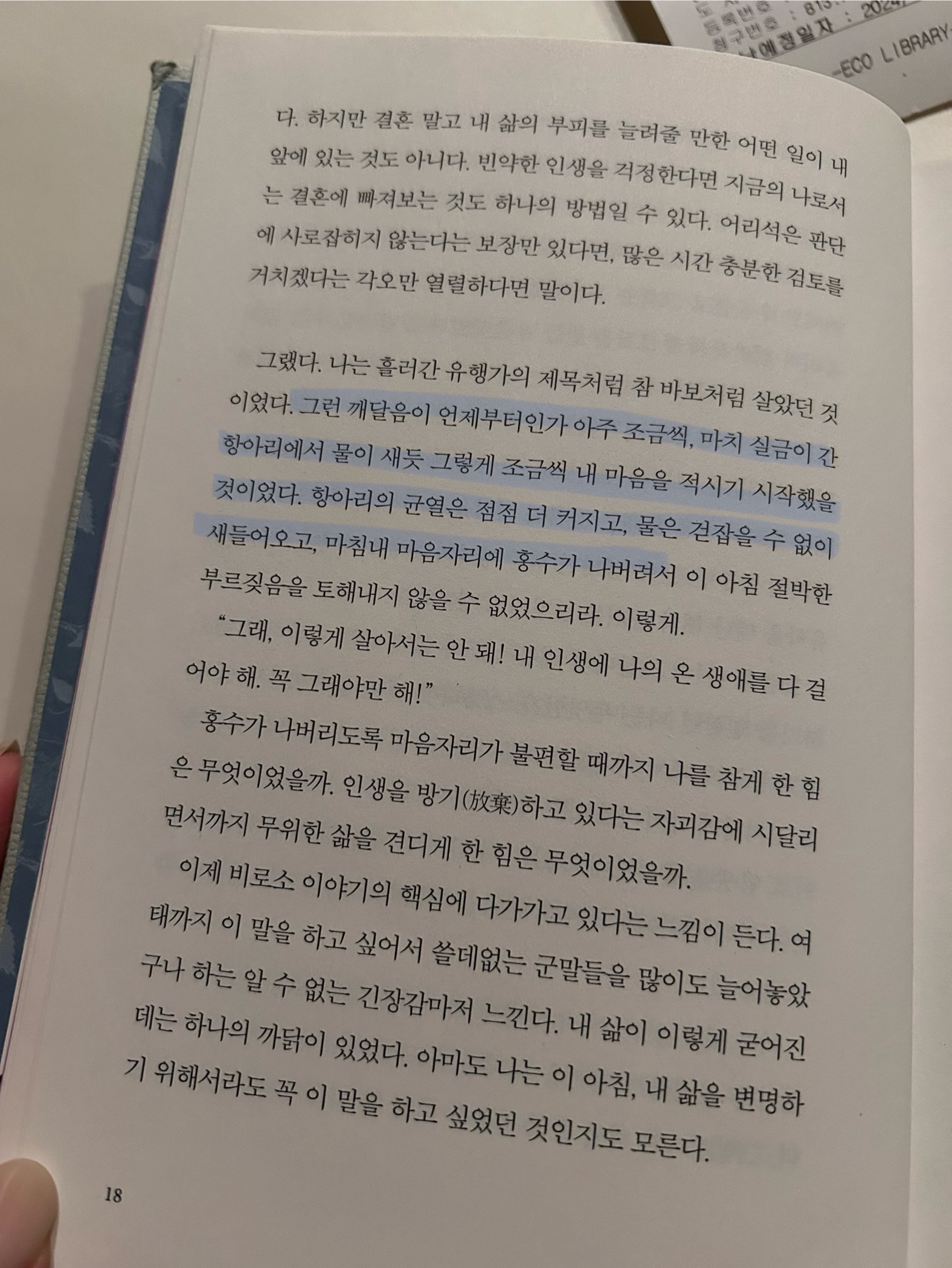 그런 깨달음이 언제부터인가 아주 조금씩, 마치 실금이 간 항아리에서 물이 새듯 그렇게 조금씩 내 마음을 적시기 시작했을 것이었다. 항아리의 균열은 점점 더 커지고, 물은 걷잡을 수 없이 새들어오고, 마침내 마음자리에 홍수가 나버려서 이 아침 절박한 부르짖음을 토해내지 않을 수 없었으리라.