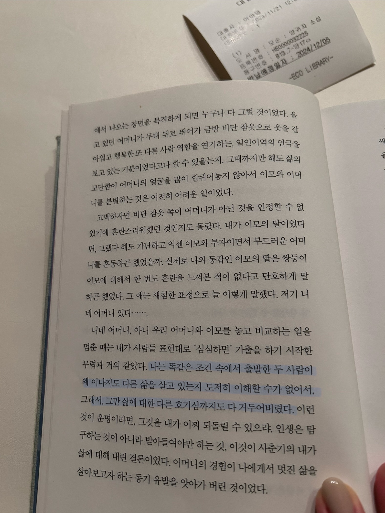 생각해보면 어머니와 이모는 한 몸이었다. 한 몸의 두사람이 이렇게도 살고 저렇게도 살았던 것이었다. 한 쪽이 떨어져 나가는 아픔, 나는 어머니의 슬픔을 이해했다.