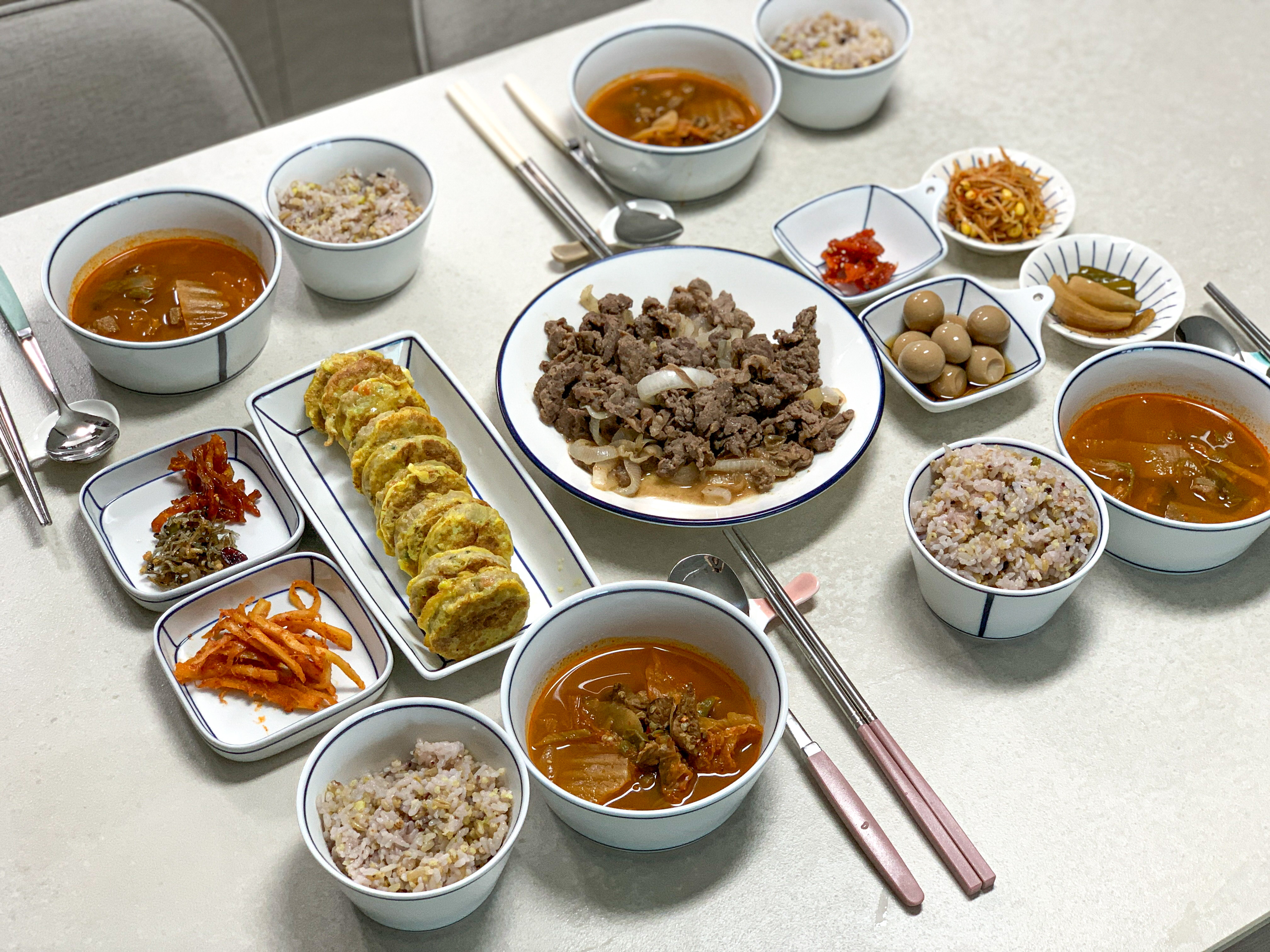 소불고기도 해주고, 시어머니가 주신 반찬과 직접 만든 반찬까지-!