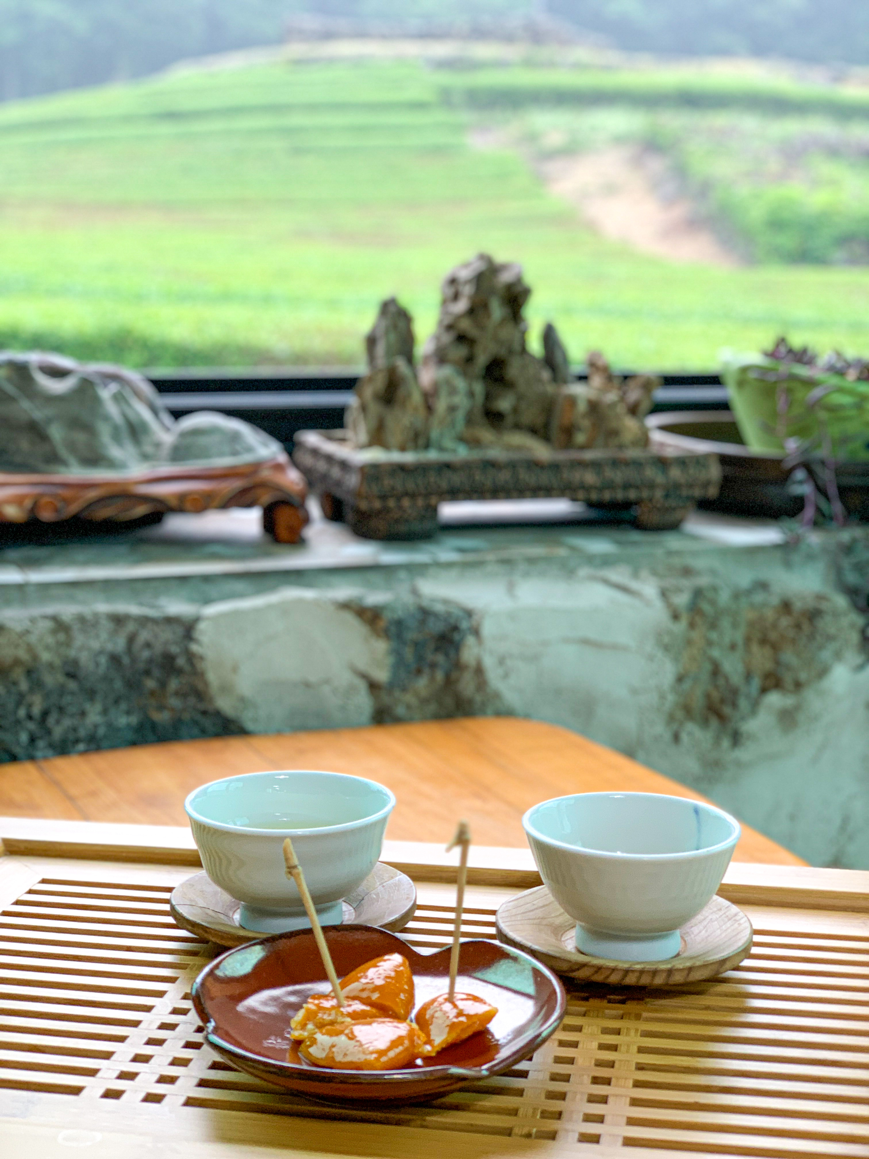 녹차와 황차 두 가지 맛을 볼 수 있었다.