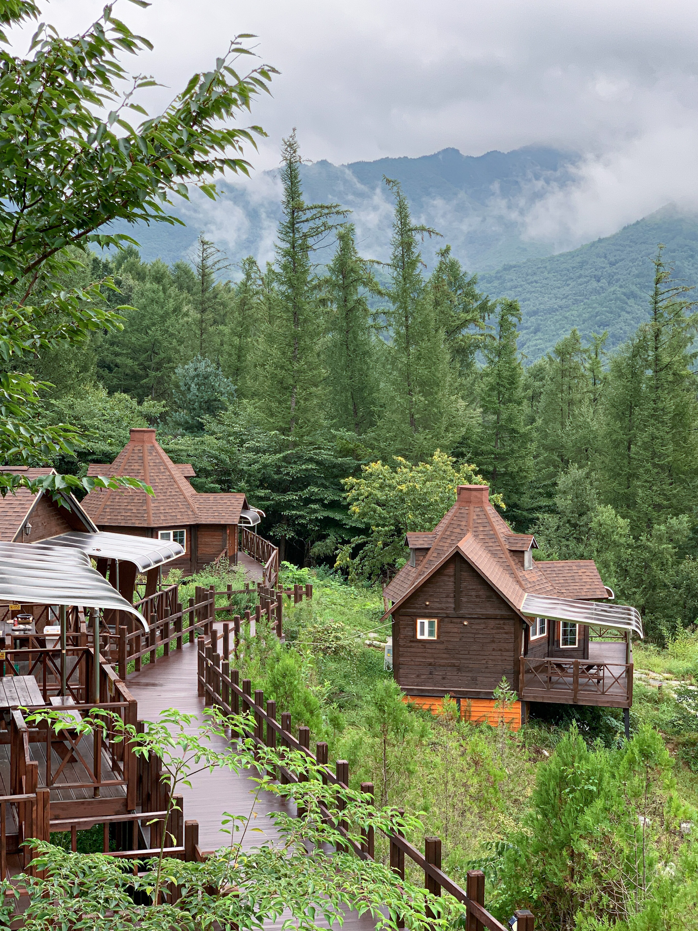 숲 길 따라 방갈로가 있는데, 스위스 저리가라...(스위스 안가봄)