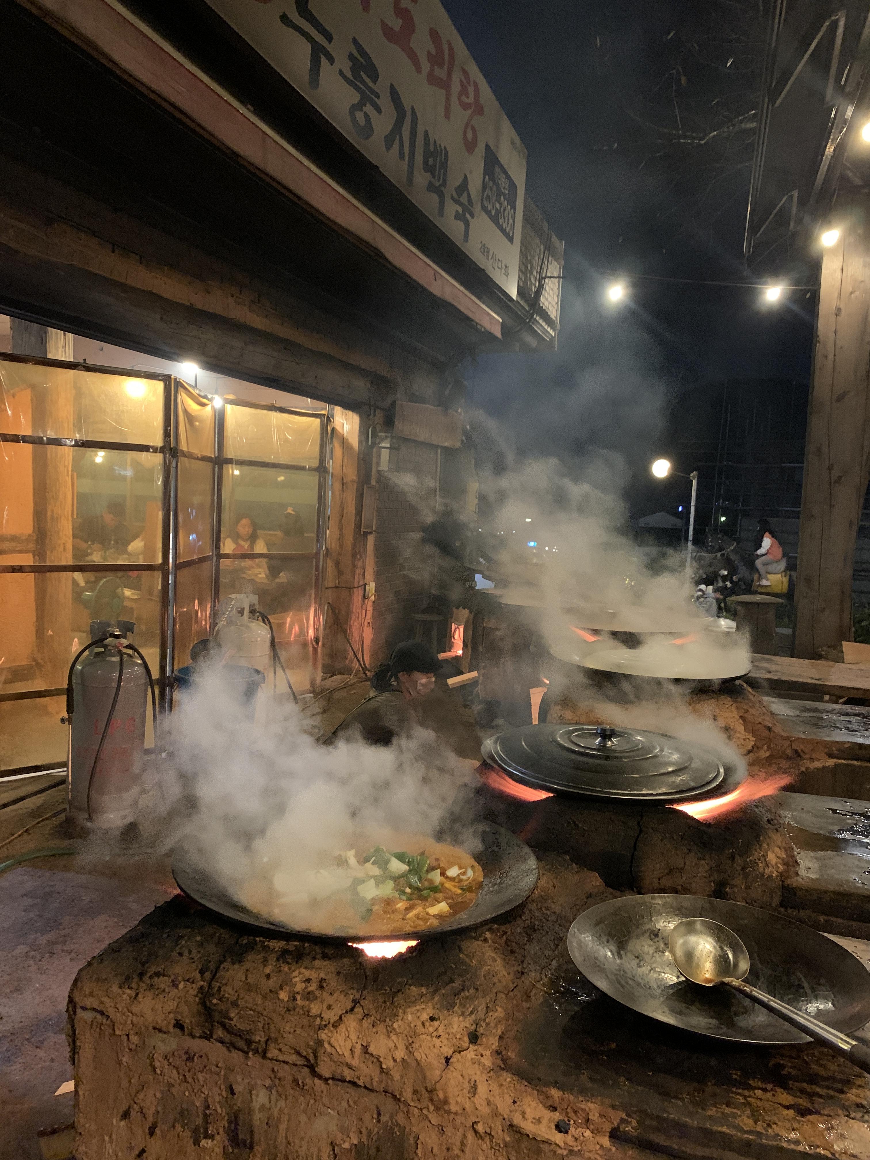 (웨이팅하면서 가마솥 위에 끓고 있는 닭볶음탕을 보니 시간이 금방 갔다..)
