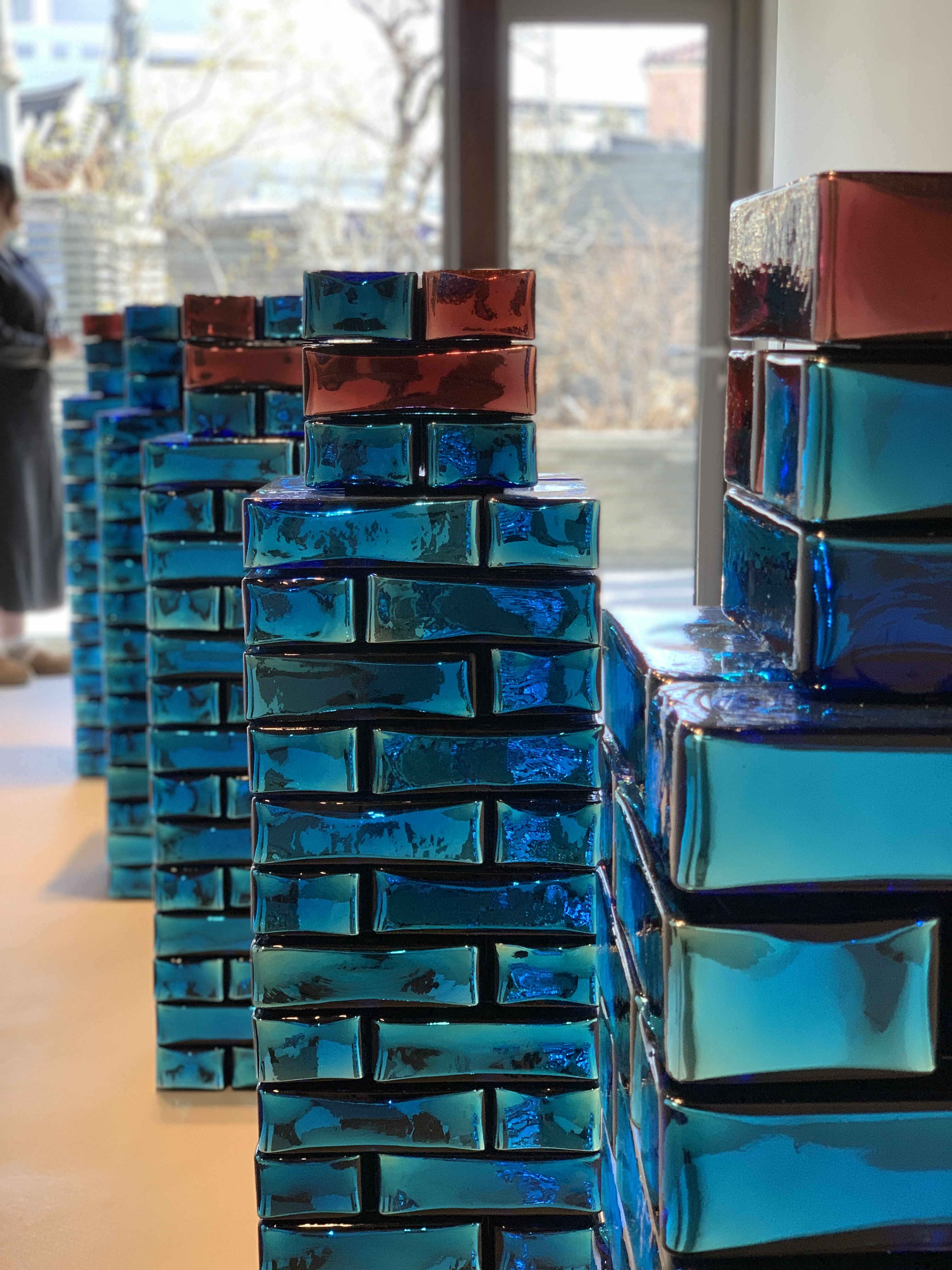 유리 벽돌은 조형적으로 한 발 더 나아간다. 단순하고 정제되어 있으며 미니멀리즘한 조각들은 더 이상 벽에 걸리는 형태가 아닌 작품 스스로 서 있는 형태로 변화되어 독립성을 강조한다.