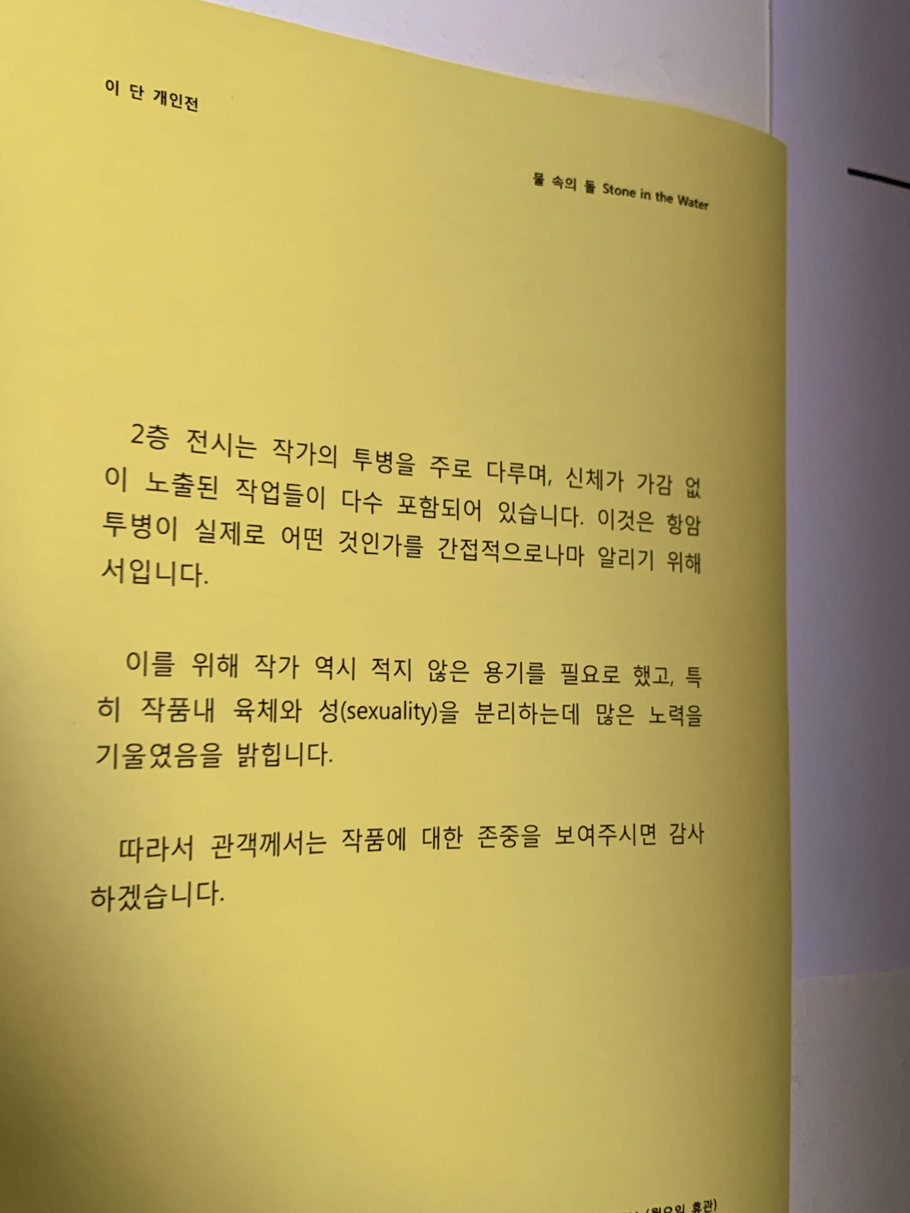 이 전시회를 보며 우울함이 지속됬고, 나 뿐만 아닌 내 주변 사람들에게도 벌어질 수 있는 일이라는 것을 되새겼다.