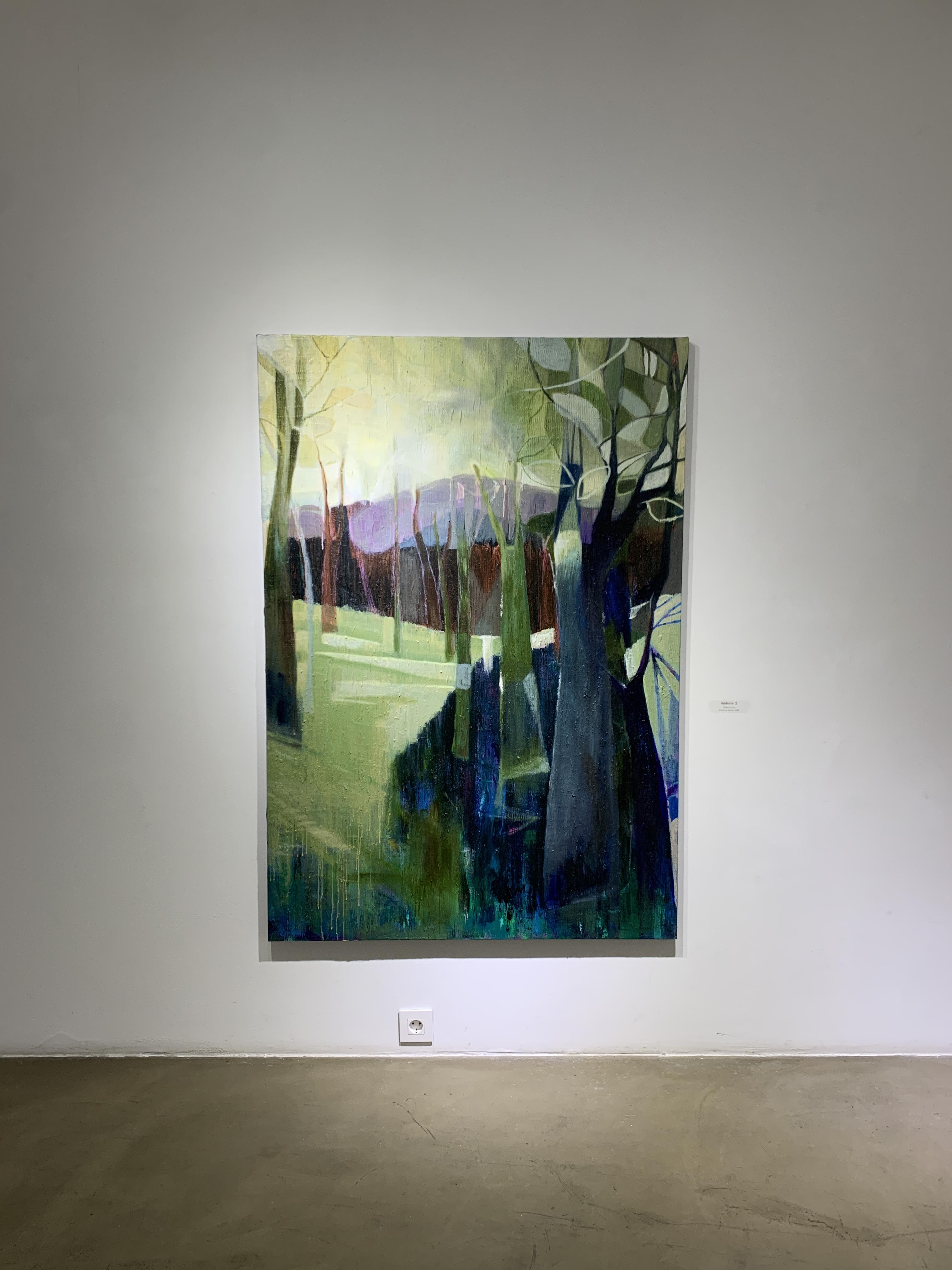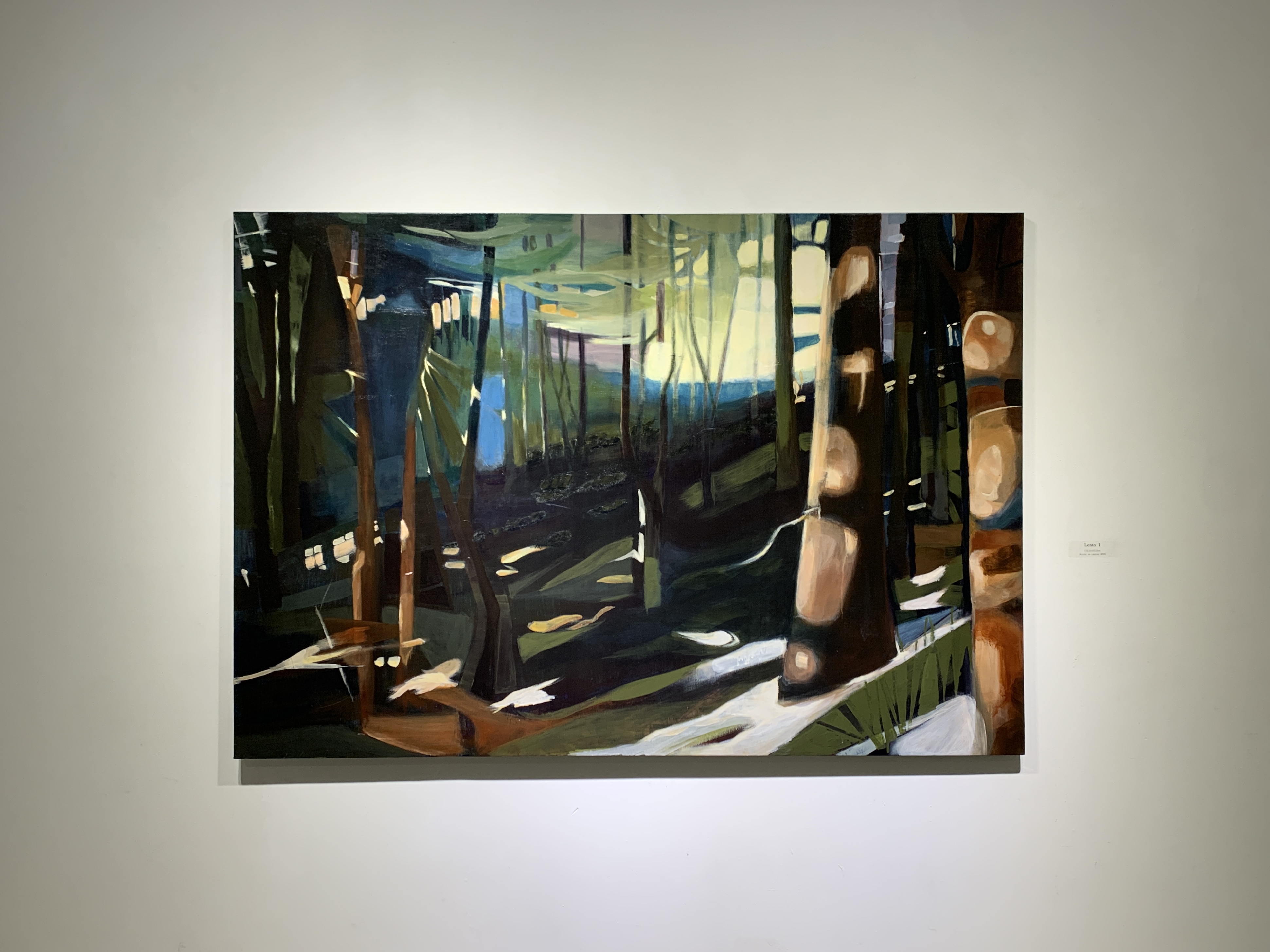 작품을 오래 들여다 보고 있으면, 나무 사이로 내리쬐는 햇빛 표현과 어두운 컬러로 편안함과 고요함이 전해졌다.
